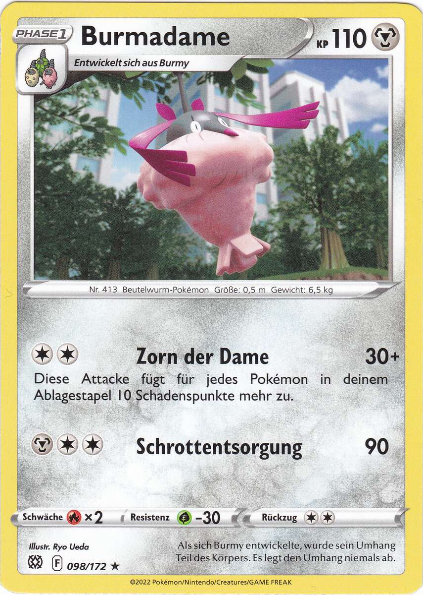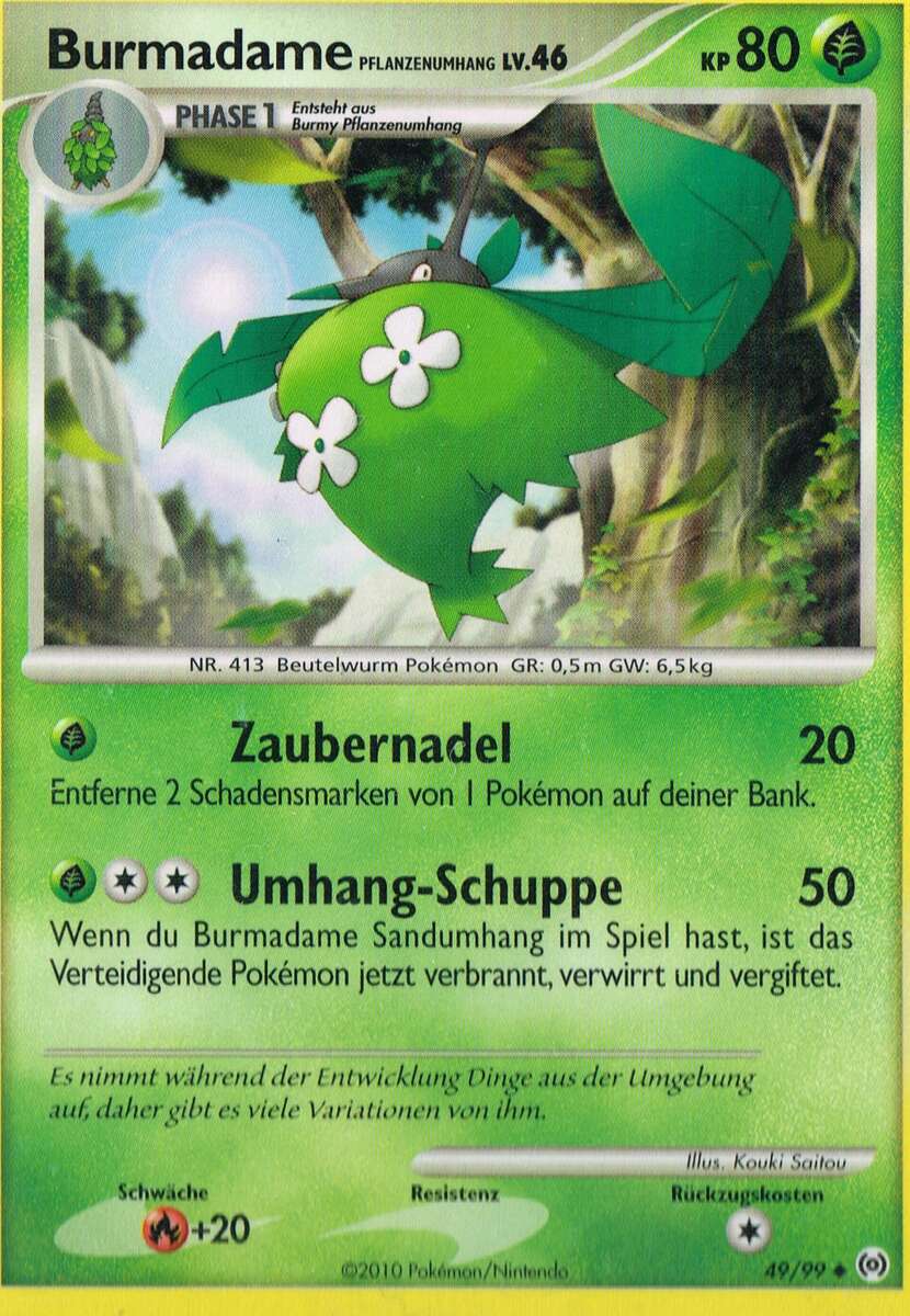 - SD Als sich Burmy entwickelte, wurde sein Umhang Teil seines Körpers. Es legt diesen nun nicht mehr ab.