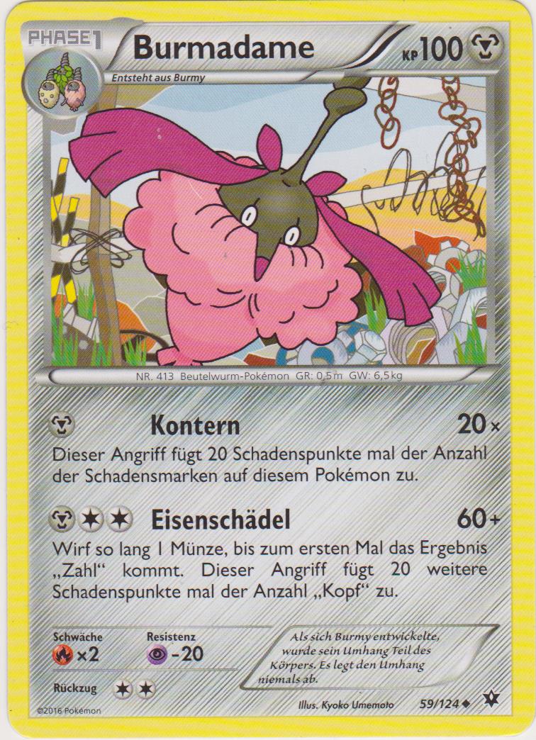 - AS Als sich Burmy entwickelte, wurde sein Umhang Teil des Körpers. Es legt den Umhang niemals ab.