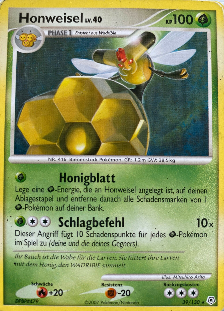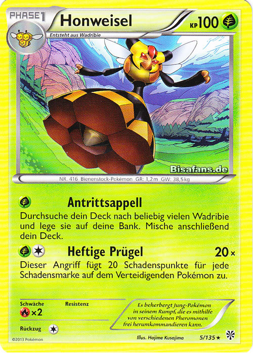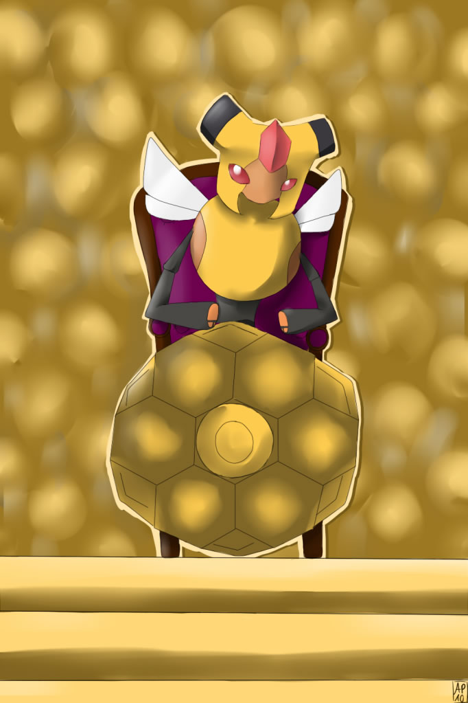 - LP Von diesem Pokémon gibt es nur ein Exemplar je Kolonie. Ist es in Gefahr, springen die Larven aus seinen sechs Waben hervor und schlagen zurück.