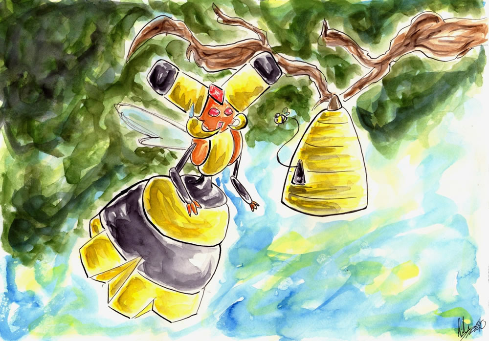 - SD Sein Bauch fungiert als Wabe für die Larven. Diese zieht es mit dem von Wadribie gesammelten Nektar groß.