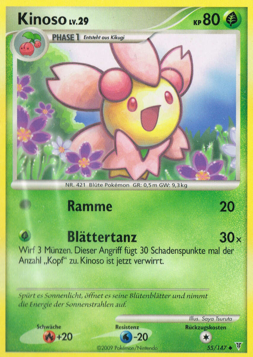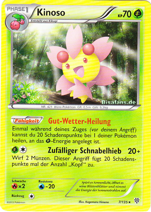 Kinoso erlernt auf diese Weise in der vierten Generation keine Attacken.Kinoso ändert die Form, wenn die Sonne scheint.