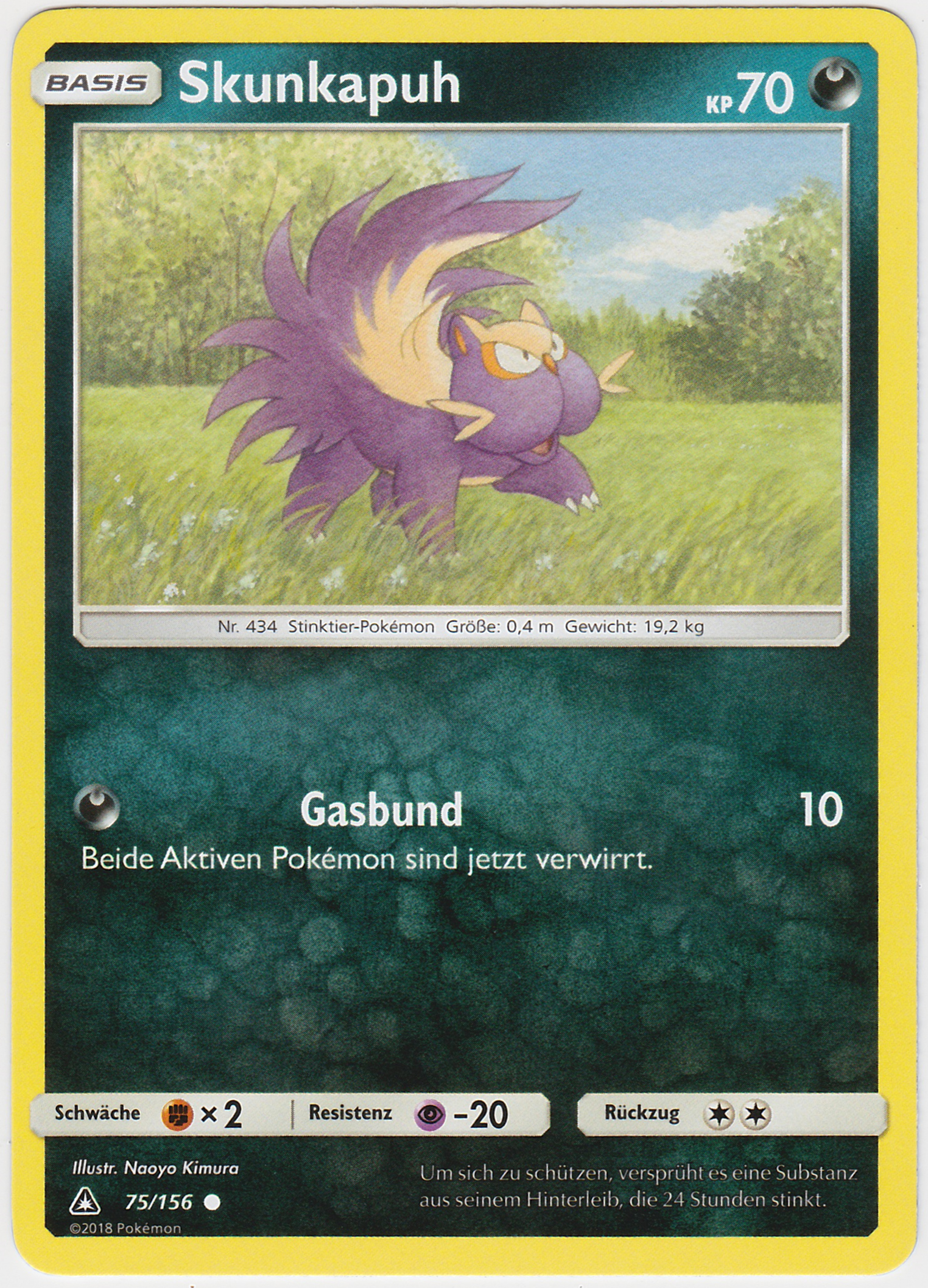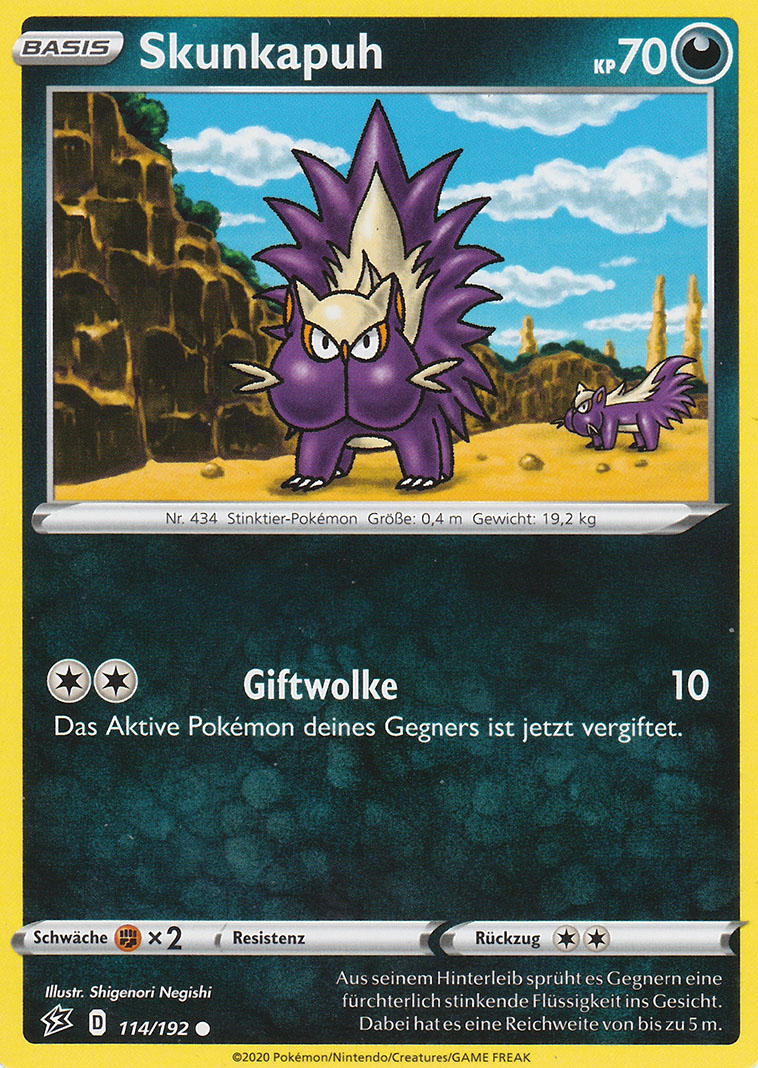 - K Der Gestank der Substanz, die es aus seinem Hinterleib versprüht, verbreitet sich in einem Radius von 2 km und vertreibt andere Pokémon.