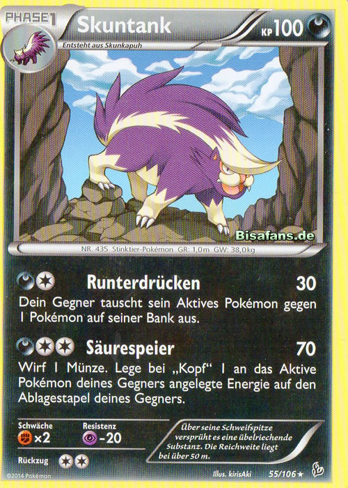 - HGSS Über seine Schweifspitze versprüht es eine stinkende Substanz. Bei Dauerfeuer lässt der Geruch nach.