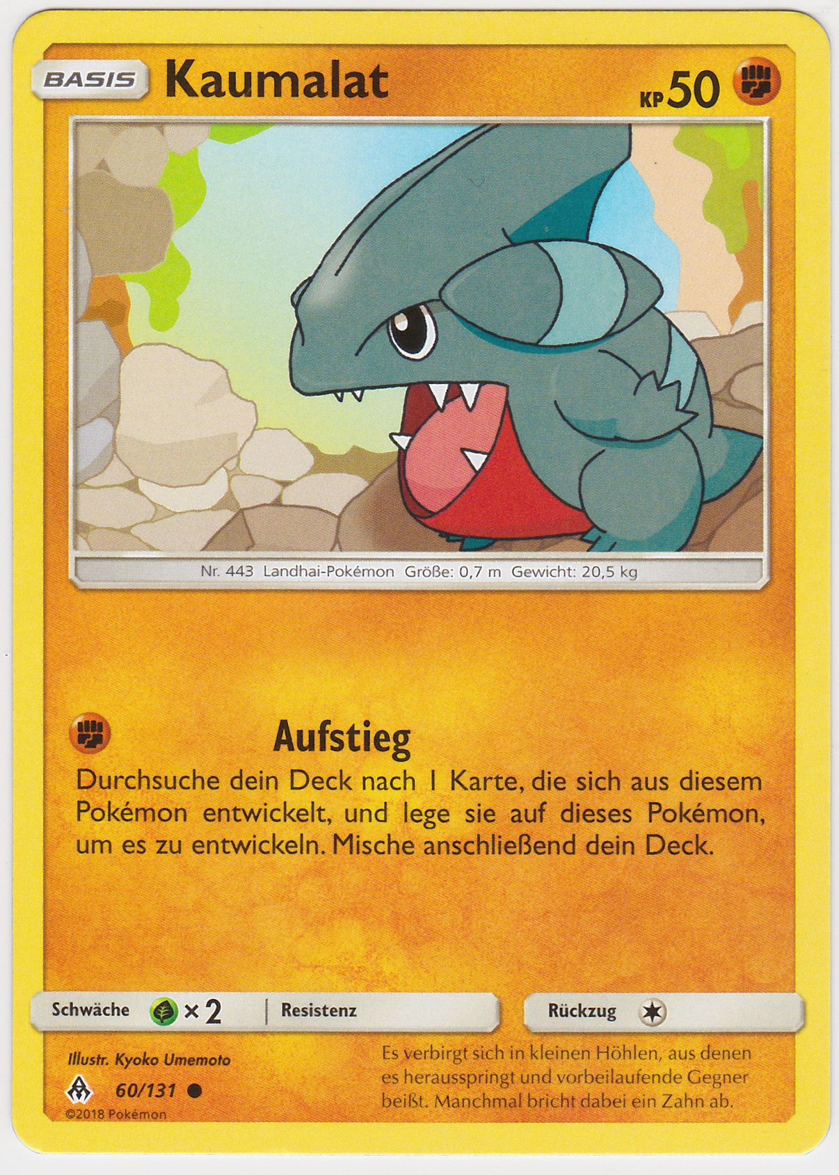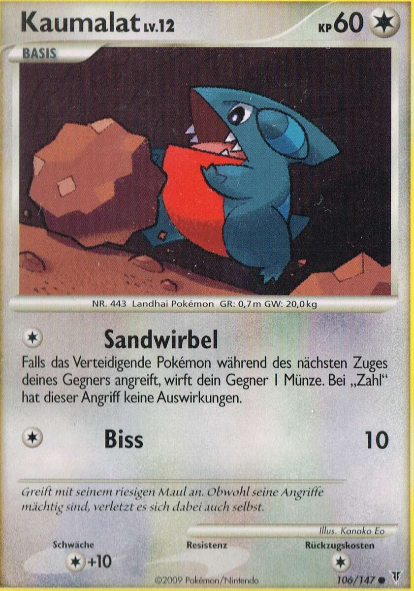- SD Dieses Pokémon nistet in kleinen Löchern in Höhlenwänden. Es springt Beute an, die sich zu nah heranwagt, und schnappt zu.