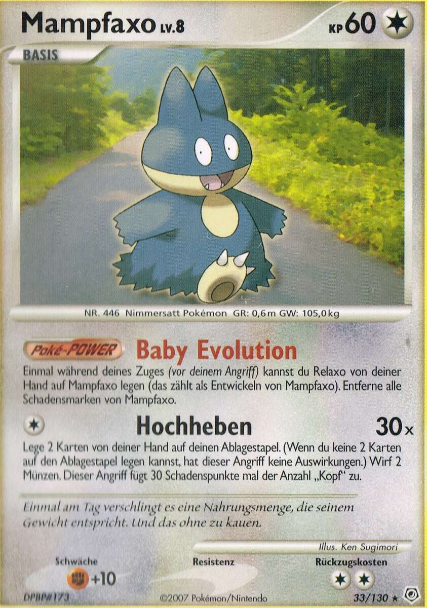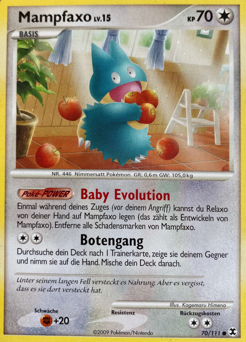 - HGSS Unter seinem struppigen Fell trägt es Nahrung mit sich herum. Dann verschlingt es sie in einem Happs.