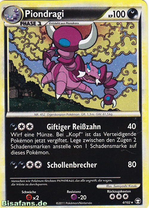Piondragi erlernt auf diese Weise in der vierten Generation keine Attacken.Pokédexeinträge