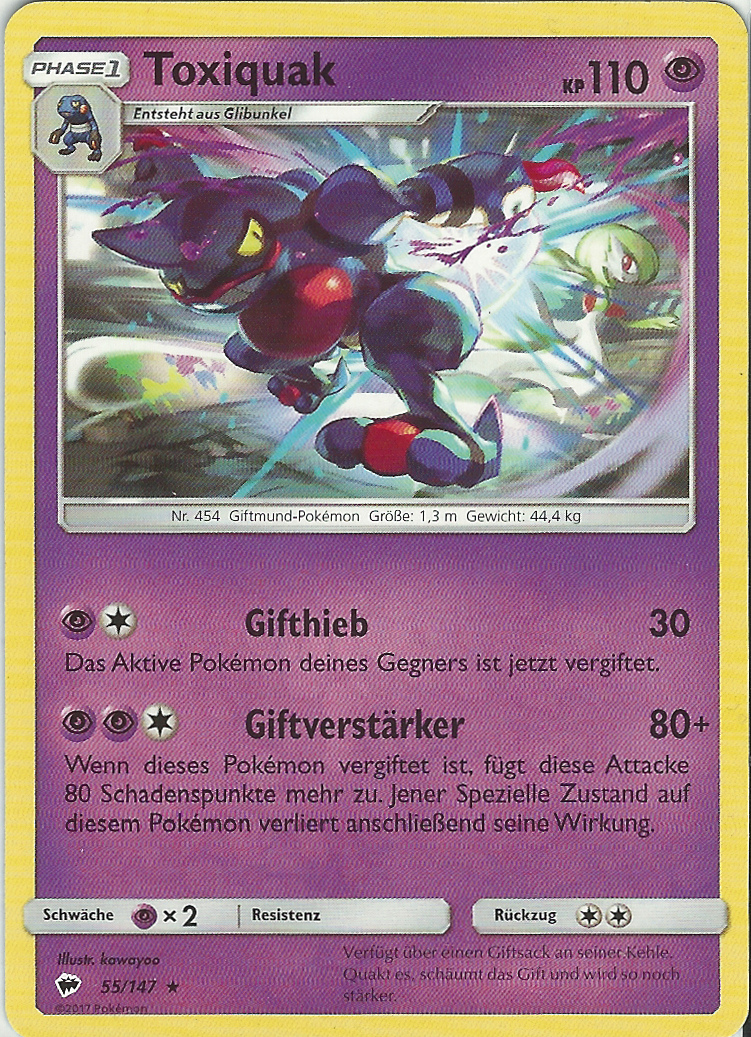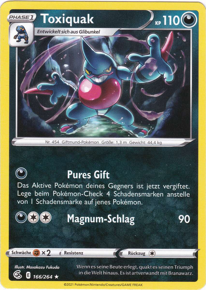 - P Toxiquak verfügt über einen Giftsack an seiner Kehle. Quakt es, schäumt das Gift und wird so noch stärker.