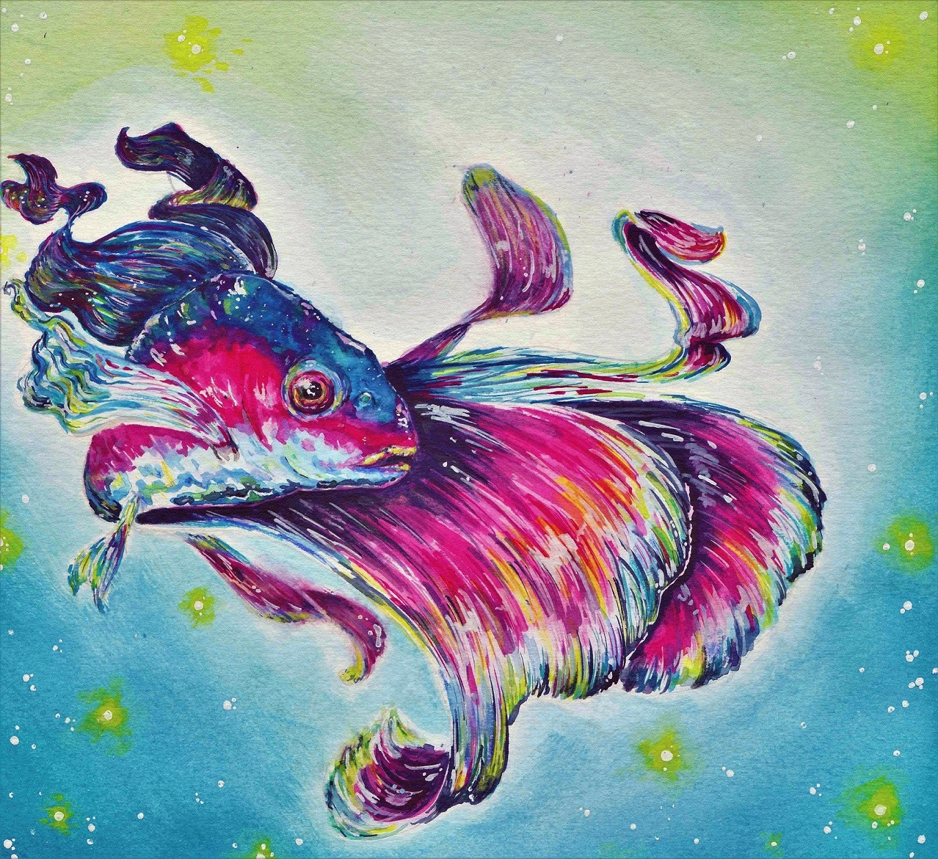 - SD Wenn es lange dem Sonnenlicht ausgesetzt war, leuchten die Muster auf seinen Schwanzflossen bei Dunkelheit in intensiven Farben.