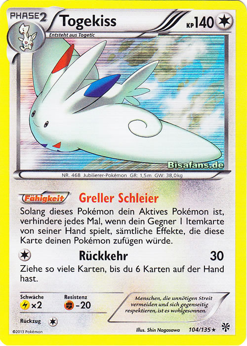- OR Es heißt, Togekiss erscheine in friedlichen Zeiten und verteile alle möglichen Wohltaten.