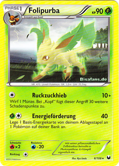 Wenn ihr Karten besitzt, die in unserer Galerie fehlen (sichtbar durch einen Kartenrücken), könnt ihr diese einscannen und uns via E-Mail an tcg@bisafans.de senden. Vielen Dank!