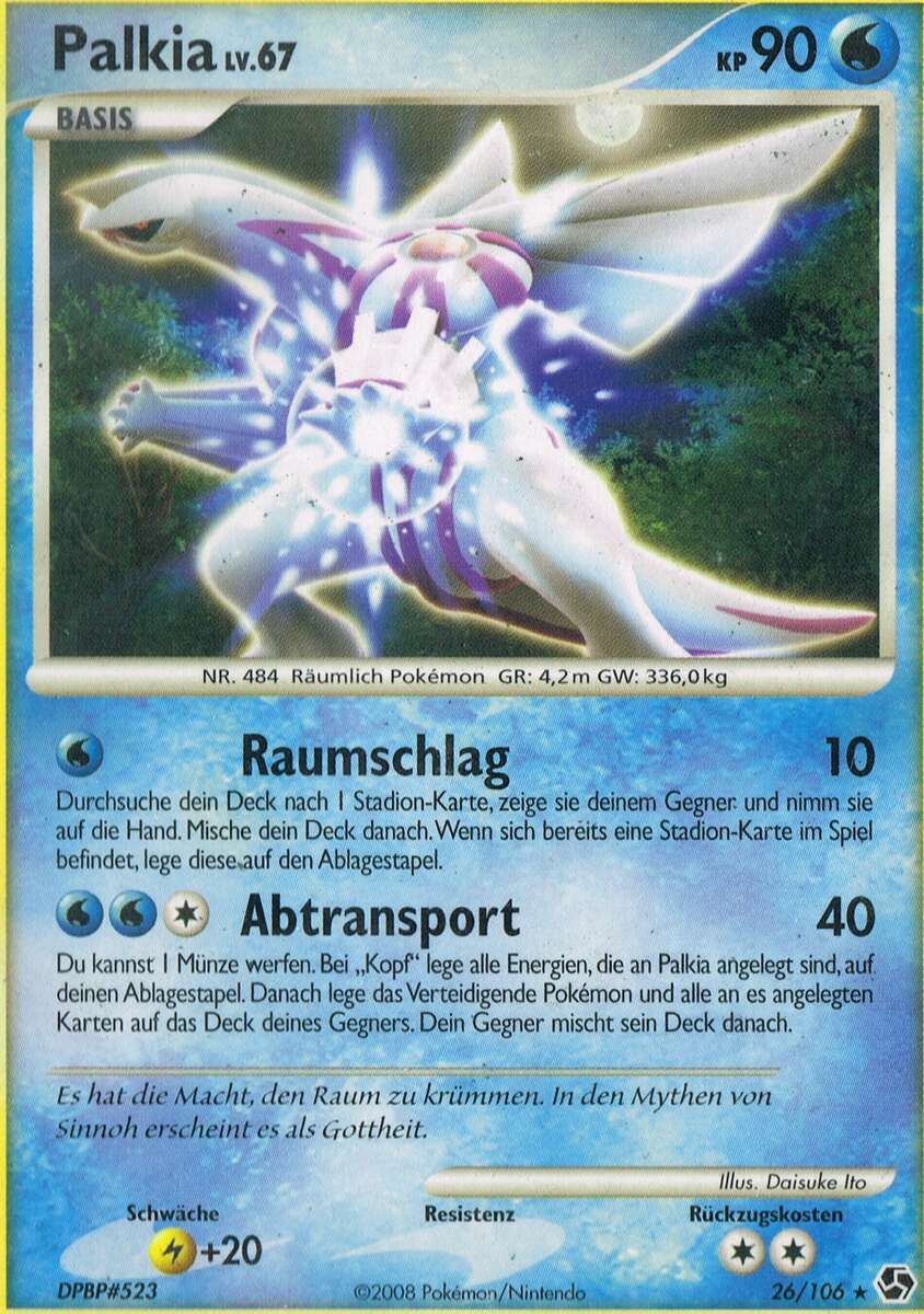 - SW Ein Legendäres Pokémon aus der Sinnoh-Region. Mit dem Atem von PALKIA wird das Universum stabiler.