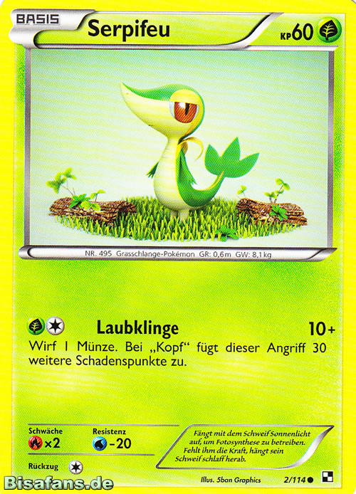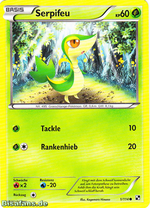Serpifeu erlernt auf diese Weise in der fünften Generation keine Attacken.Pokédexeinträge