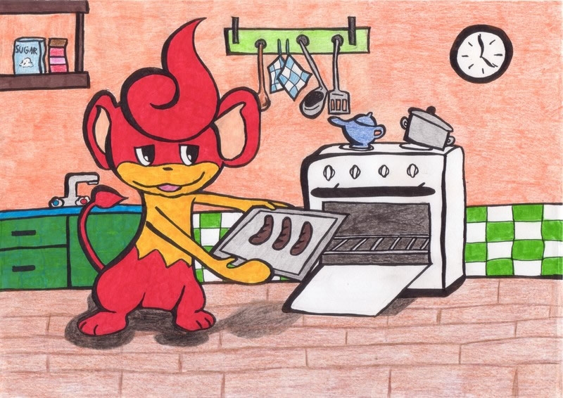 - X Ein kultiviertes Pokémon, das Beeren vor dem Verzehr stets anbrät. Es bietet den Menschen gerne seine Hilfe an.