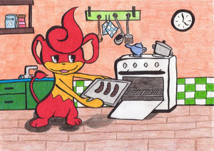 - OR Ein kultiviertes Pokémon, das Beeren vor dem Verzehr stets anbrät. Es bietet den Menschen gerne seine Hilfe an.