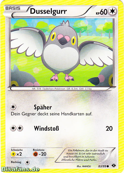 - AS Ein Pokémon, das in der Stadt zu Hause ist. Es ist sehr zutraulich und bevölkert in Scharen öffentliche Plätze und Parks.
