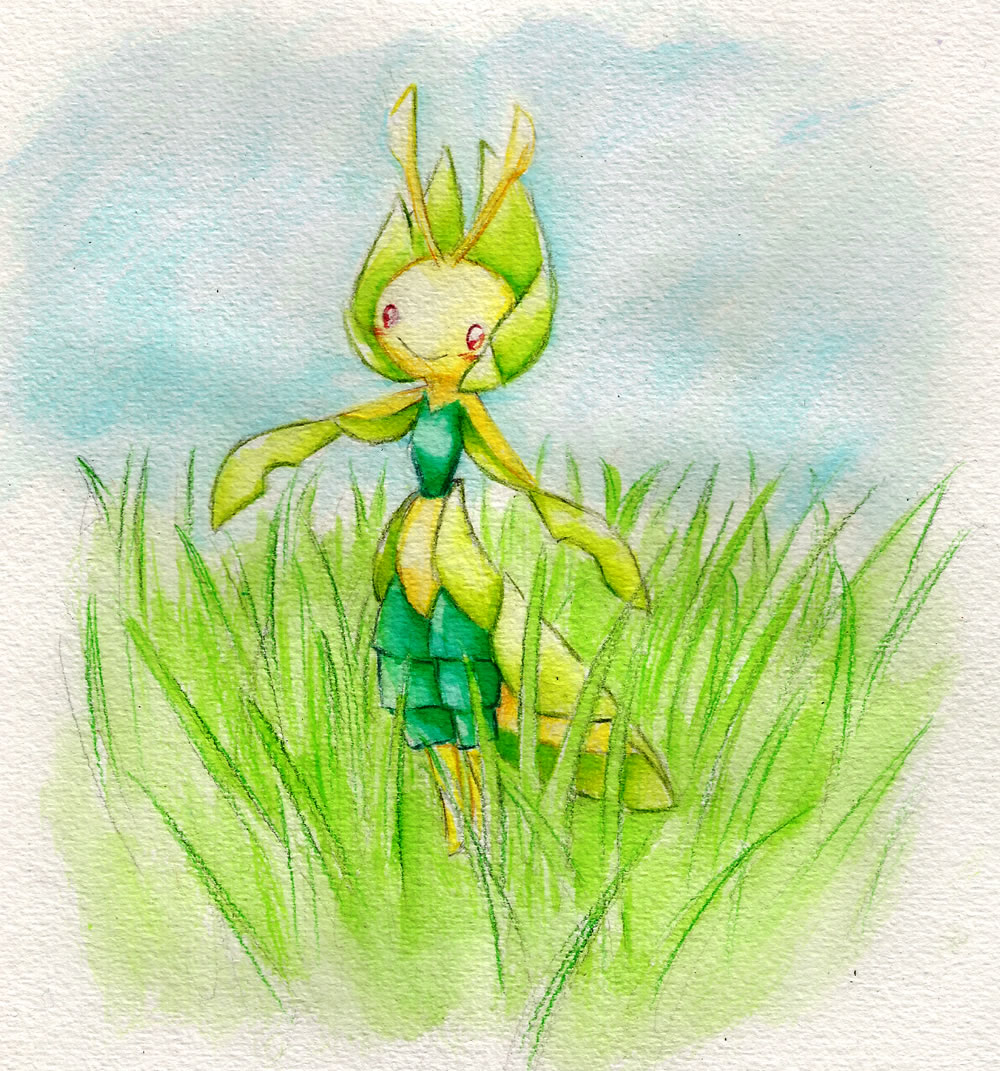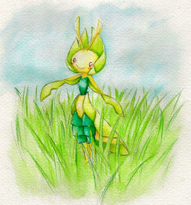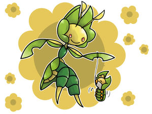 - OR Begegnet es einem jungen Pokémon, näht es ihm mit den klebrigen Fäden aus seinem Mund ein Kleid aus Blättern.