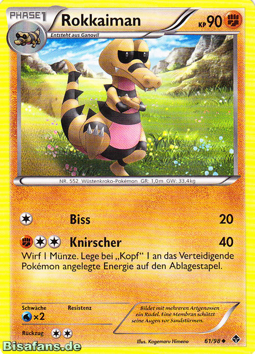 Wenn ihr Karten besitzt, die in unserer Galerie fehlen (sichtbar durch einen Kartenrücken), könnt ihr diese einscannen und uns via E-Mail an tcg@bisafans.de senden. Vielen Dank!