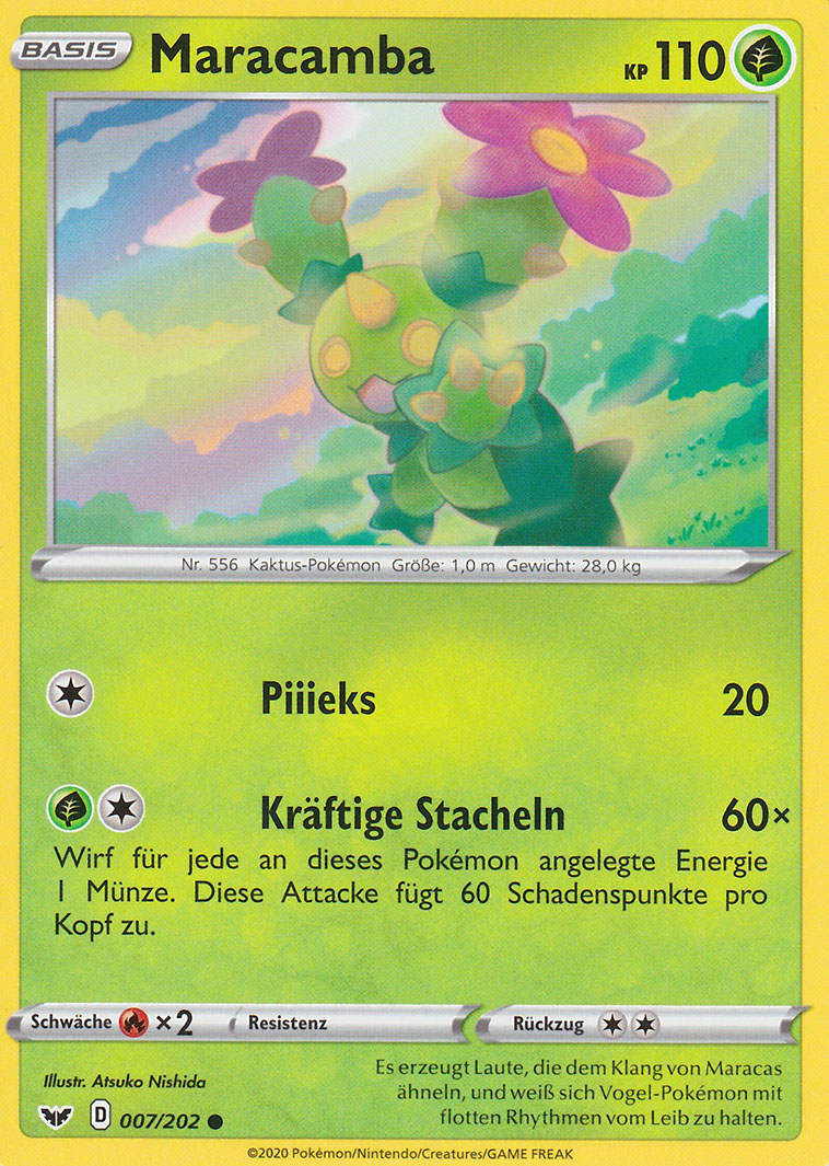 - SW Es erzeugt Laute, die dem Klang von Maracas ähneln, und weiß sich Vogel-Pokémon mit flotten Rhythmen vom Leib zu halten.