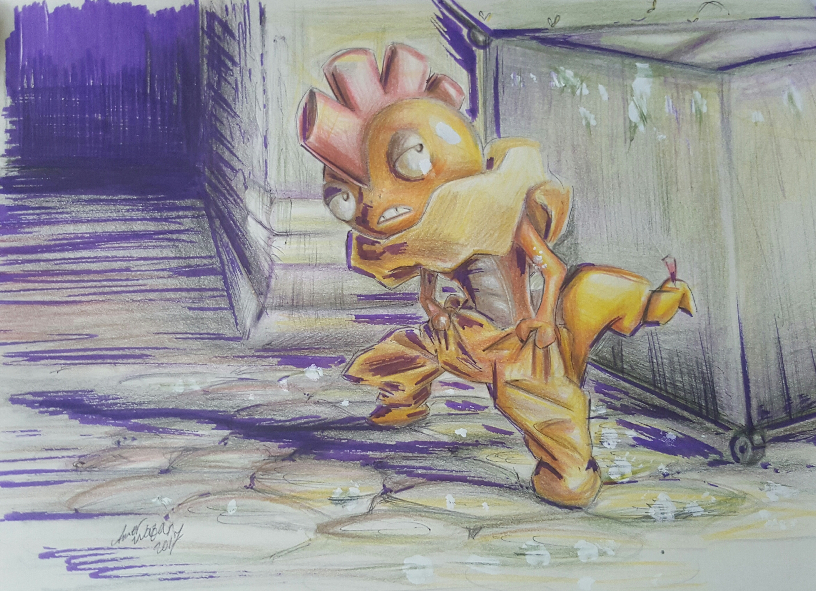 - X Es wehrt Angriffe mit seiner alten Haut ab und kontert mit Tritten. Sein Ego entspricht der Größe seines Kamms.