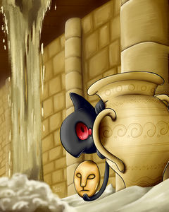 - GO Eine Tontafel, auf der ein Fluch eingeritzt wurde, hat Besitz von diesem Makabaja ergriffen. Man sagt, es ziehe seine Kraft aus dem Groll anderer.