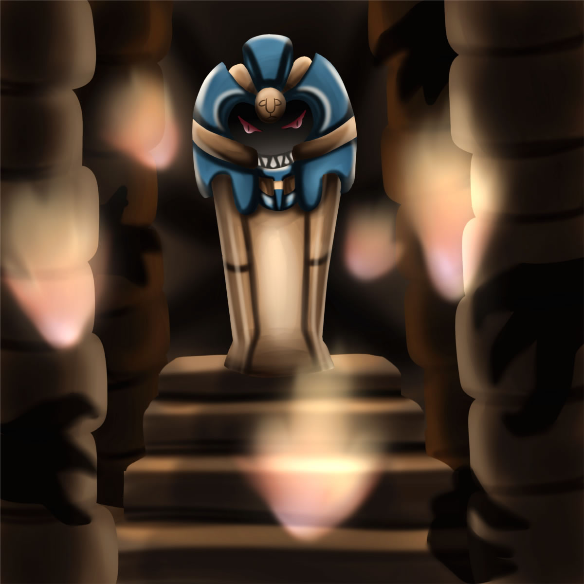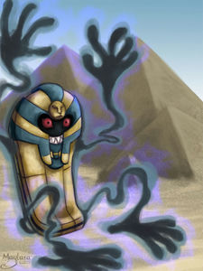 - W Es tarnt sich als prächtiger Sarkophag und zieht Grabräubern die Ohren lang. Sein Körper ist mit Gold überzogen.