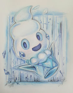 - AS Ein Eiszapfen, der durch die Energie der aufgehenden Sonne zum Pokémon wurde. Nachts deckt es sich mit Schnee zu.