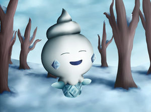 - W Ein Eiszapfen, der durch die Energie der aufgehenden Sonne zum Pokémon wurde. Nachts deckt es sich mit Schnee zu.