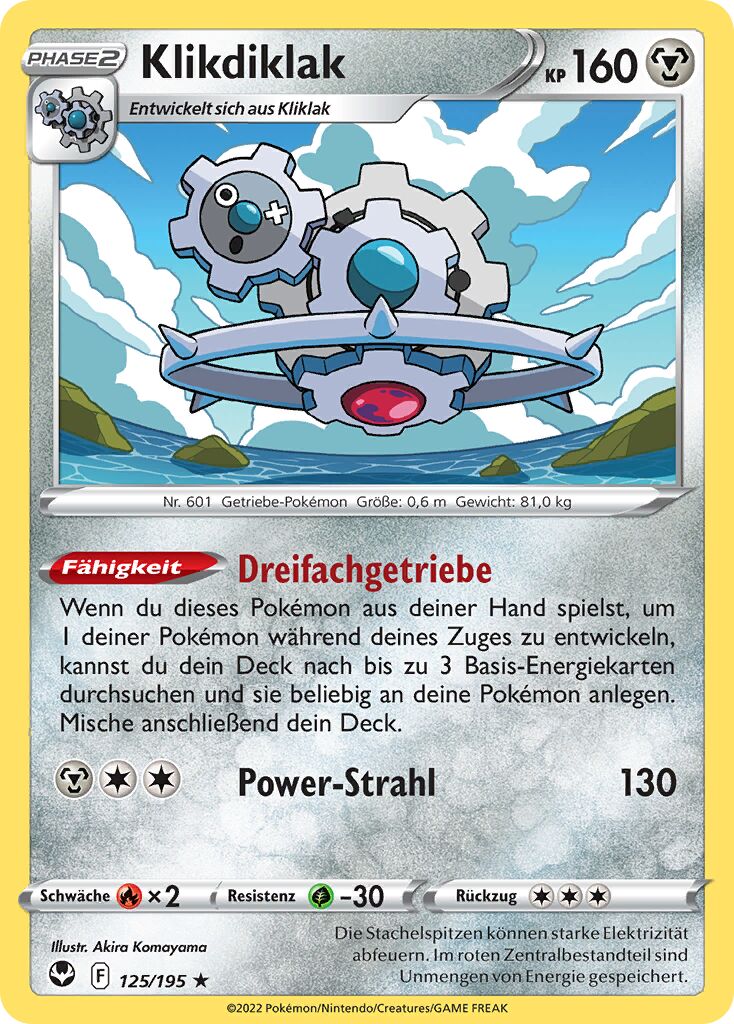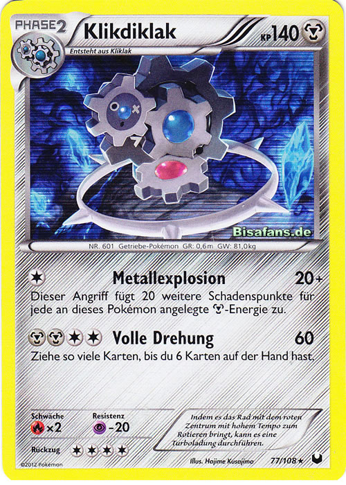 - SH Dieses Pokémon besteht aus drei schnell rotierenden Zahnrädern. Das neue dritte Rad mit den Stacheln ist unbelebt.
