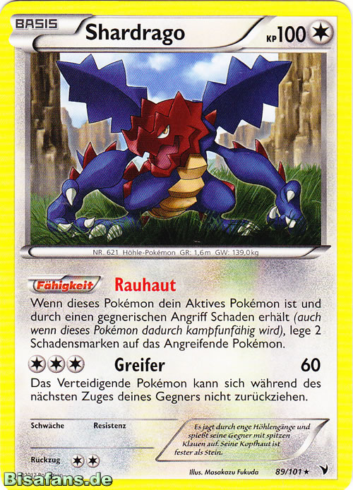 - SHKS Shardrago ist grausam und gerissen. Es nimmt die selbstgegrabenen Höhlen anderer Pokémon ein, um sie zu seinem Unterschlupf zu machen.