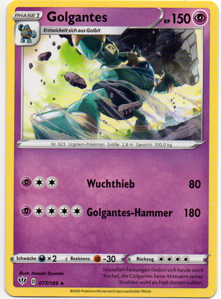 - NPS Es beschützt die Ruinen und befolgt allem Anschein nach Megalons Anweisungen. Obwohl Golgantes sehr rätselhaft ist, scheinen die anderen Pokémon es zu mögen.