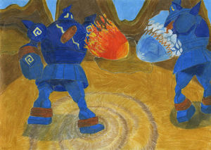 - GO Löst sich das Siegel auf seiner Brust, gerät es völlig außer Kontrolle und legt ganze Städte in Schutt und Asche.