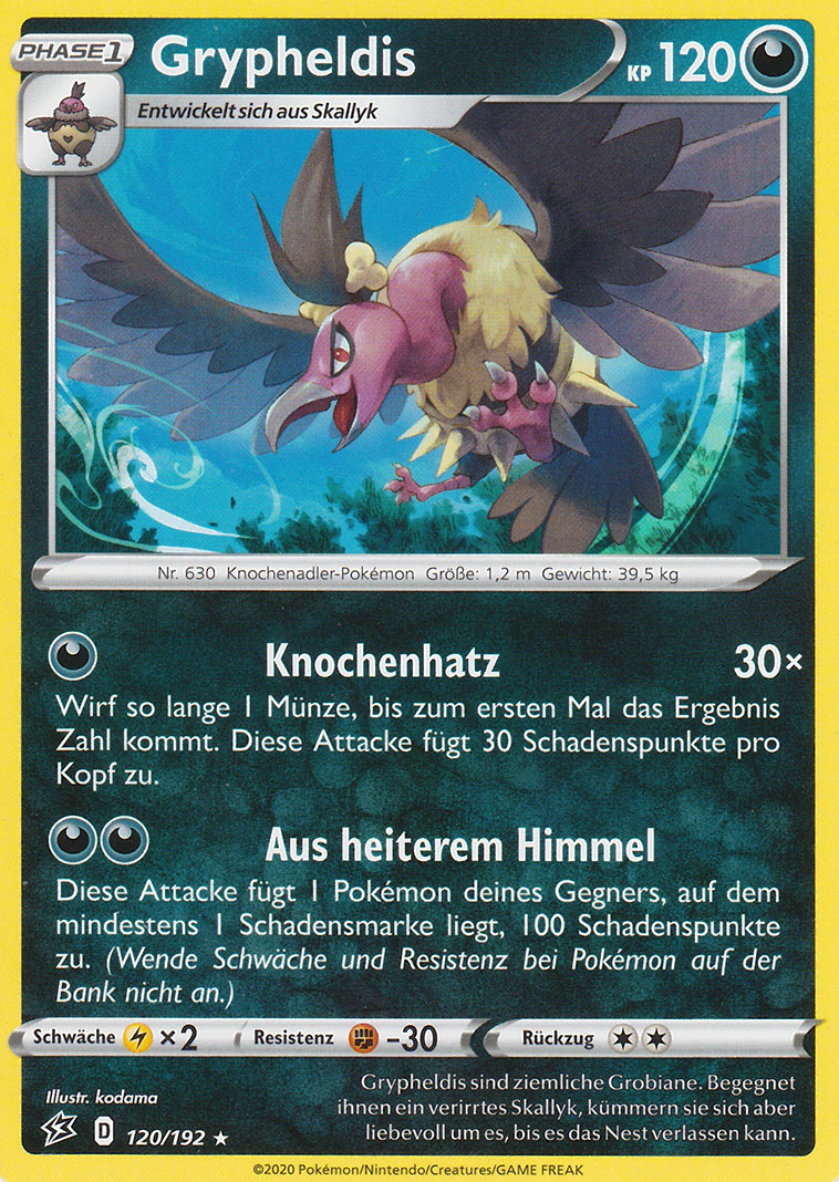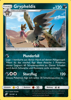Grypheldis kann mit seinem guten Bulk viel Unheil anrichten und physisch offensive Pokemon mit Schmarotzer und Toxin stark einschränken. Mit Ruheort kann der Vogel sich immer wieder heilen und Gefahren wie Toxin, die das defensive Potenzial sonst zunichtemachen, können mit dem Verhöhner umgangen werden. Der Beulenhelm ist praktisch für guten Chipdamage bei Kontakt-Attacken, alternativ wären auch Überreste spielbar, aber mit Ruheort ist man schon gut ausgestattet. Wirbelwind kann in Erwägung gezogen werden, wenn man mit Tarnsteinen spielt oder um gezielt Konter von Grypheldis wieder auszuwechseln. Der Verhöhner ist aber eher vorzuziehen. Wetterfest schützt vor Hagel, Sandsturm und Sporenattacken, eine sehr gute Fähigkeit um zu stallen.