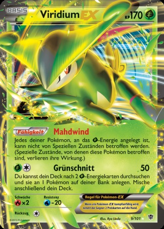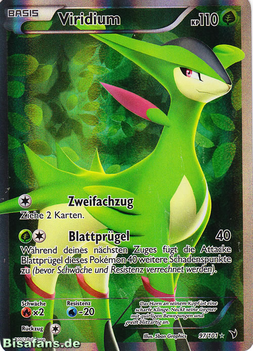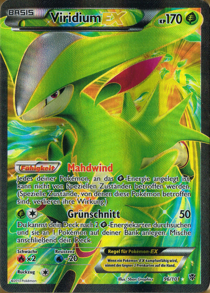 - SWKS Eine Legende berichtet davon, wie Viridium einst mit Kobalium und Terrakium unermüdlich die Pokémon Einalls vor den Menschen beschützte.
