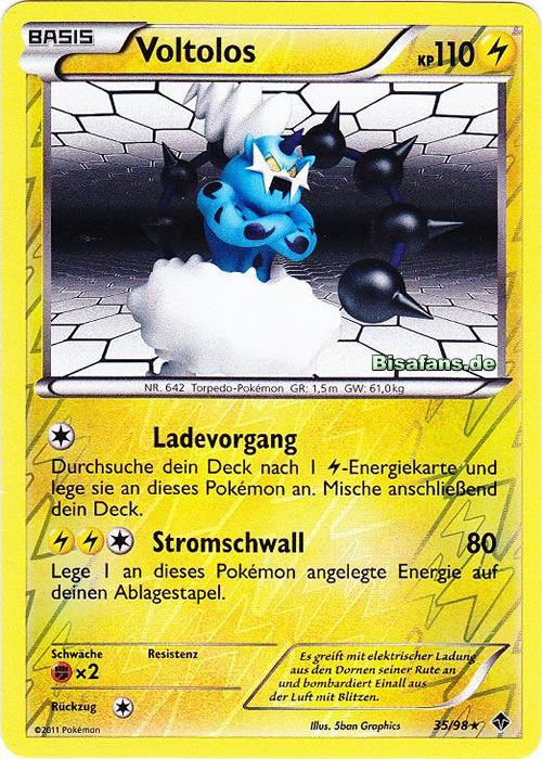 - W Es greift mit elektrischer Ladung aus den Dornen seiner Rute an und bombardiert Einall aus der Luft mit Blitzen.