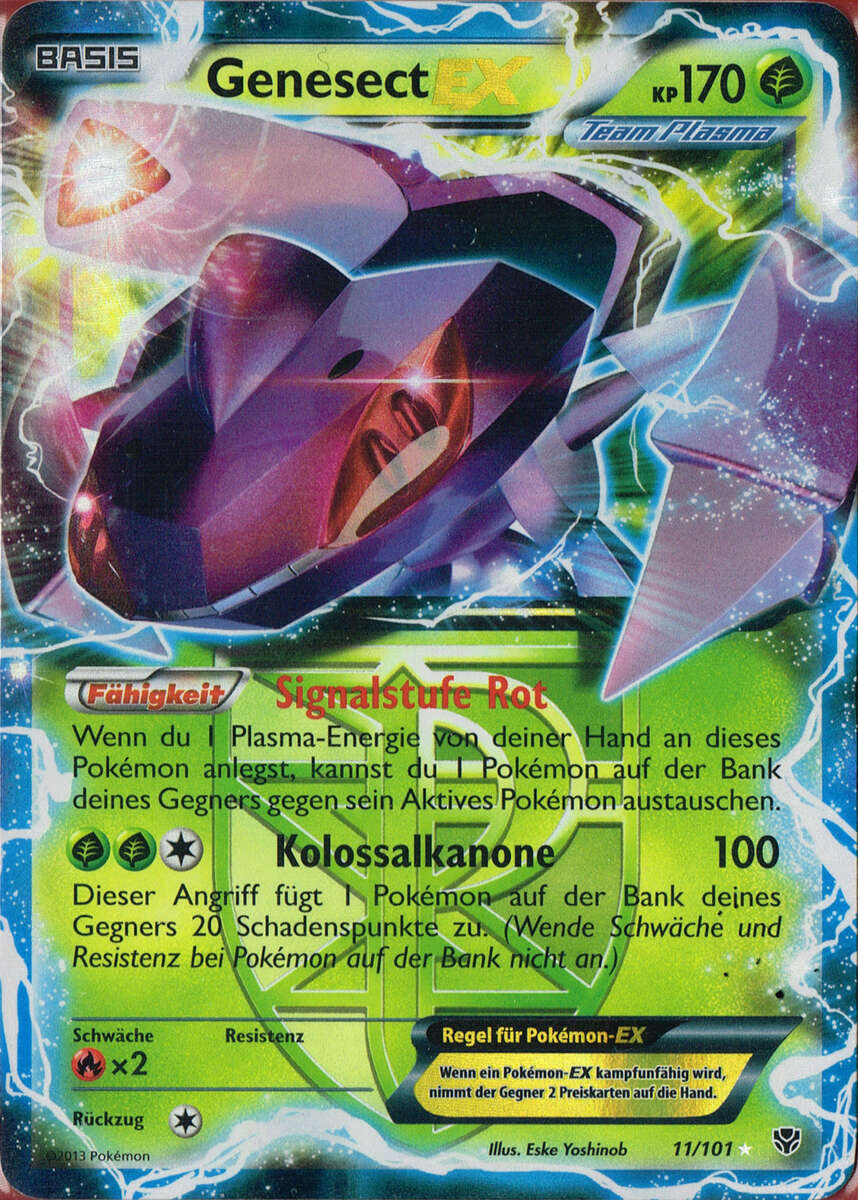 Genesect wechselt sein Aussehen wenn es ein Modul trägt. Passend zum Modul nimmt die Spezialattacke Techblaster den Typen des getragenen Items an.