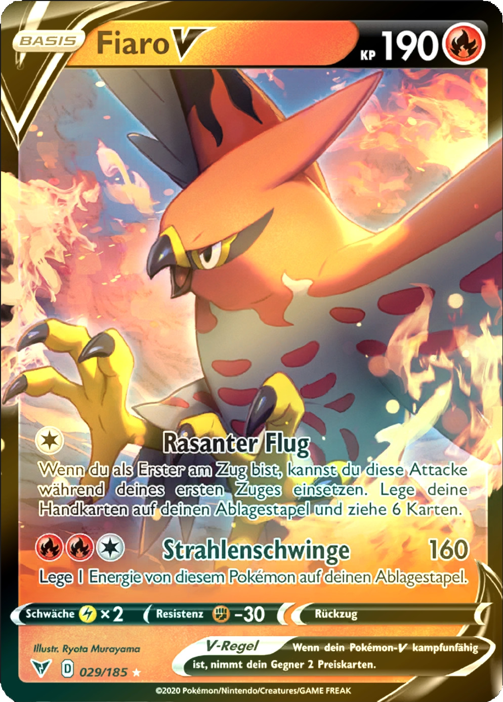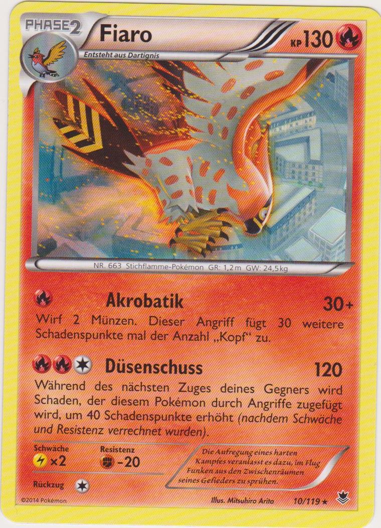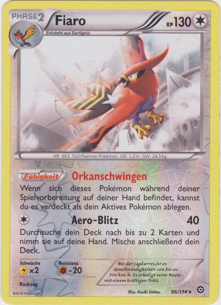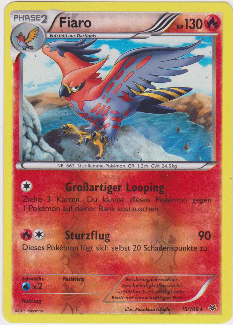 - UM Fiaro ernährt sich vor allem von Vogel-Pokémon. Es nähert sich überfallartig seiner Beute und befördert sie mit einem kräftigen Tritt zu Boden.