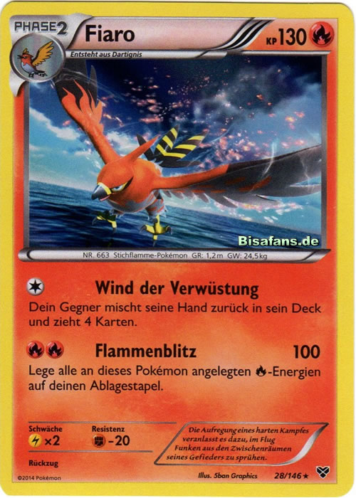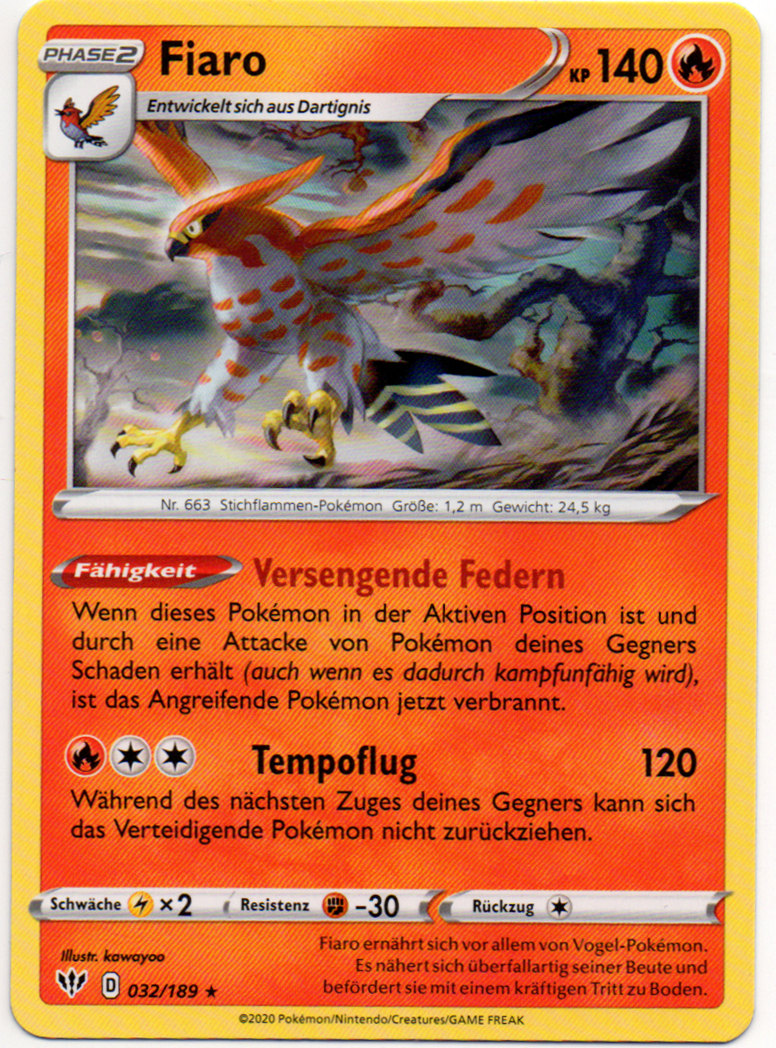 - SWRI Fiaro ernährt sich vor allem von Vogel-Pokémon. Aus den Zwischenräumen seines Gefieders sprüht es Funken, um seine Gegner einzuschüchtern.