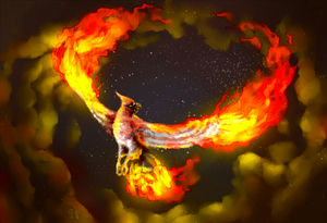 - OR Die Aufregung eines harten Kampfes veranlasst es dazu, im Flug Funken aus den Zwischenräumen seines Gefieders zu sprühen.