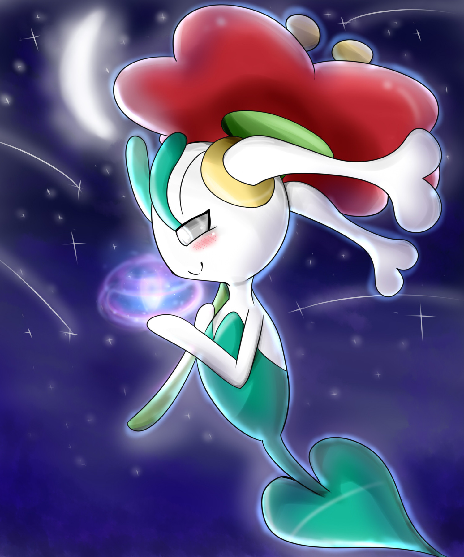 - X Es fliegt auf Wiesen umher und kümmert sich um welkende Blumen. Es setzt deren geheime Kräfte frei und nutzt diese zum Kämpfen.