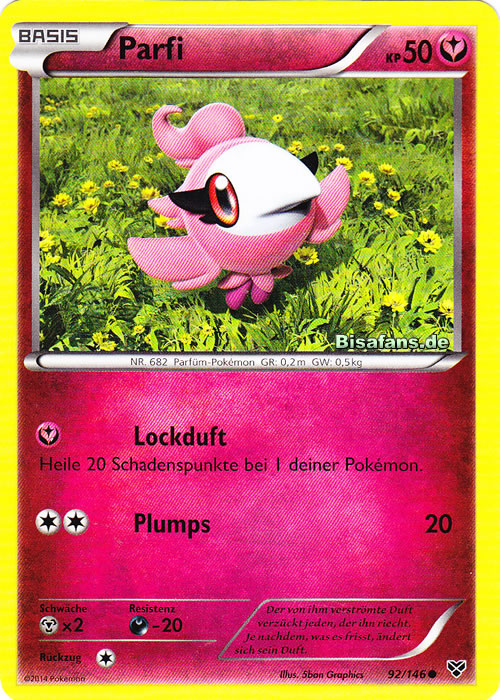- SW Dieses Pokémon erzeugt Gerüche mithilfe einer Drüse in seinem Körper. Je nach Futter kann es unterschiedliche Düfte produzieren.