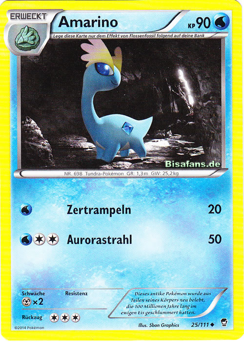 - X Dieses antike Pokémon wurde aus Teilen seines Körpers neu belebt, die 100 Millionen Jahre lang im ewigen Eis geschlummert hatten.