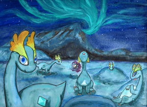 - US Vor Urzeiten lebte es in kalten Gebieten. Es heißt, wenn Amarino seine Stimme erklingen lässt, erscheinen Polarlichter.