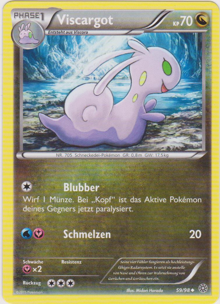 - OR Es verjagt Gegner durch Absonderung eines alles zersetzenden Schleims. Die zurückgebildeten Augäpfel des Pokémon gewähren ihm keine Sicht.