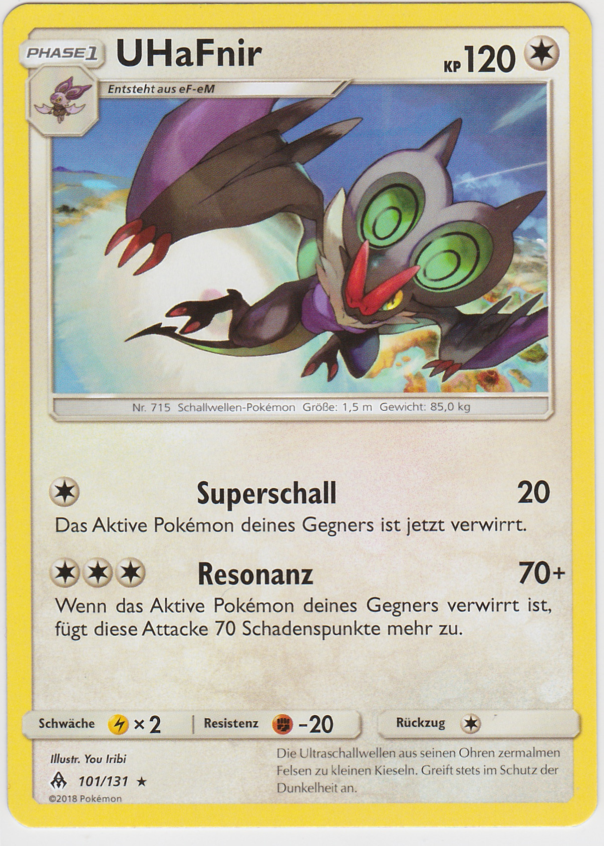 - K Die Ultraschallwellen, die dieses brutale Pokémon freisetzt, können selbst riesige Felsen zermalmen.