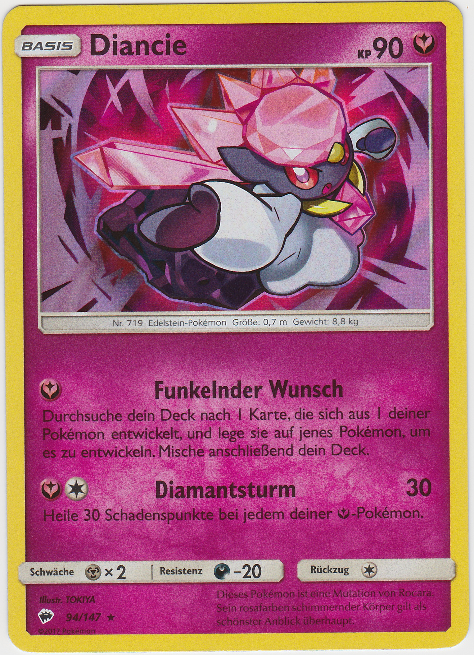 - NPS Es besitzt die wundersame Kraft, aus luftgebundenen Kohlenstoffpartikeln Diamanten zu erzeugen. Als wir Diancie zusammen mit den Rocara gesehen haben, wirkte es wie eine Prinzessin unter ihnen.