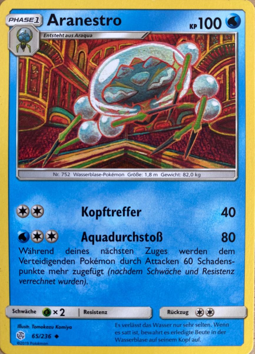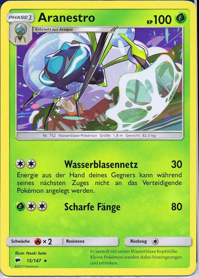 Aranestro ist wohl einer der stärksten physischen Angreifer in diesem Modus und profitiert enorm von seiner Fähigkeit Wasserblase, welche nicht nur die Kraft von Aquadurchstoß erhöht, sondern auch eventuelle Verbrennungen verhindert, die den Angriffswert senken könnten. Die EVs sind ganz simpel, garantieren overall größten Bulk und größte Angriffskraft. Als Item ist das Aquium Z Standard, alternativ können aber auch Zauberwasser oder Überreste benutzt werden. Beim Moveset hat man mehrere Möglichkeiten; Mit Aquium Z ist meist Anfallen + Filler gesehen, Zauberwasser ist meist auf Rundumschutz + Toxin gespielt und Überreste auf Sets mit Delegator. Das ist natürlich nicht verbindlich, man kann auf jedem Set prinzipiell jedes Item spielen. 0 Init-DVs für maximale Potentialausschöpfung im Bizarroraum.