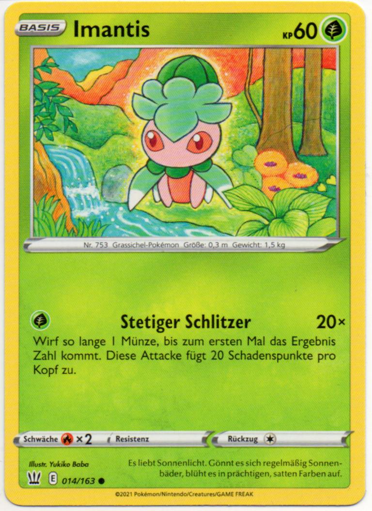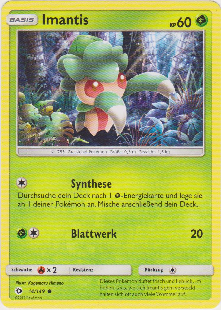 - M Dieses Pokémon duftet frisch und lieblich. Im hohen Gras, wo sich Imantis gern versteckt, halten sich oft auch viele Wommel auf.
