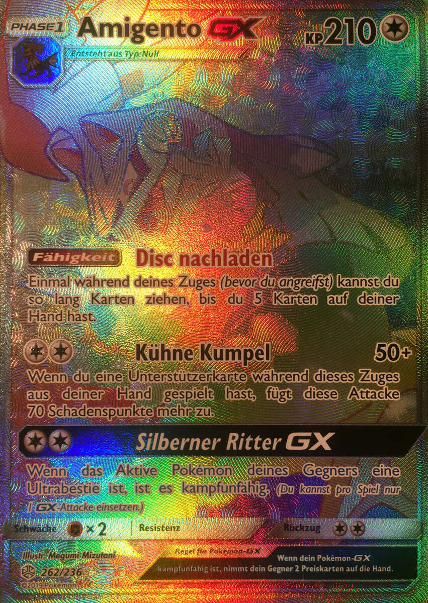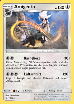 Mit Wahlband erreicht Amigento eine ordentliche Angriffskraft und kann mit Explosion immensen Schaden anrichten, wenn mit Telepathie-Kommandutan kombiniert, kann so u.U. auch der Bizarroraum sicher beschworen werden. Alternativ sind auch andere Items wie Leben-Orb, Seidenschal oder Normalium Z denkbar, dann kann man auch Schutzschild im letzten Slot spielen. Normal/Geist hat eine gute offensive Coverage, und frohe Wahlband-Varianten sowie harte Leben-Orb-Sets OHKOen Standard-Knakrack mit Eiszahn und uninvestierte Kapu-Fala mit Risikotackle. Kehrtwende ist auch eine Option, vor allem auf dem Wahlband-Set.