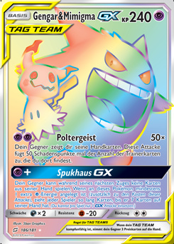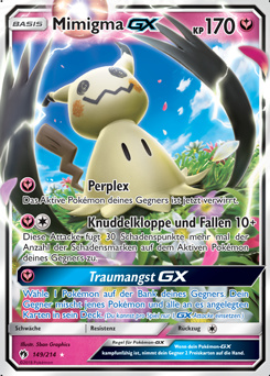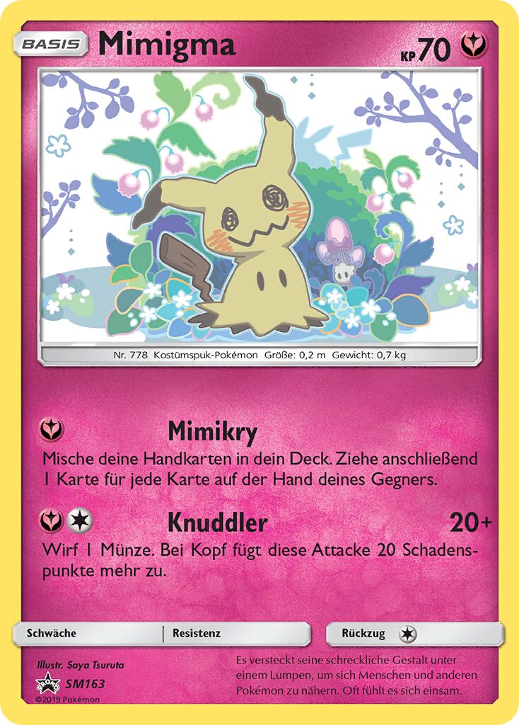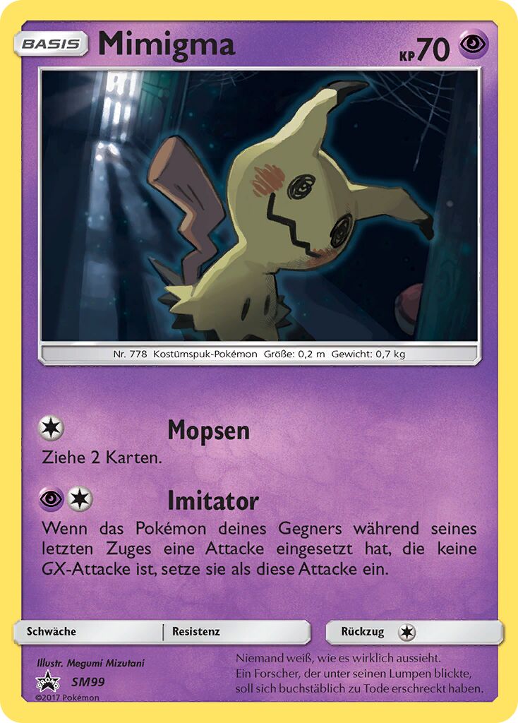 Durch seine Fähigkeit Kostümspuk bekommt Mimigma die Gelegenheit, einen Treffer einzustecken, ohne dabei Schaden zu nehmen. Nutzt man dies geschickt, kann man mit Schwerttanz seinen Angriffswert auf ein ernstzunehmendes Niveau anheben. Mit dem Fokusgurt wird der Setup zusätzlich abgesichert, aber auch ein Sylphium Z oder Phantomium Z sind gut spielbar. Z-Abgangsbund fungiert als Redirection, um bei Gelegenheit noch ein Pokémon mitzunehmen.