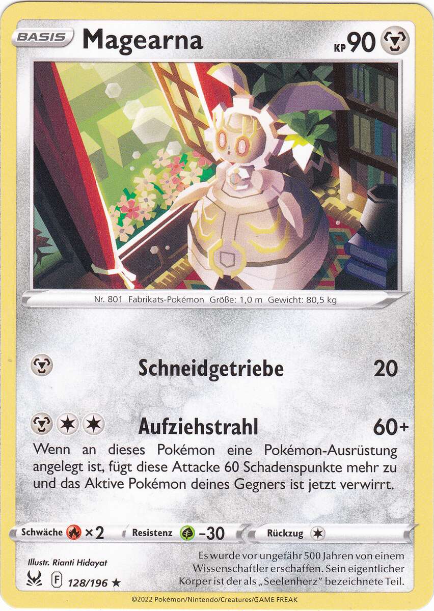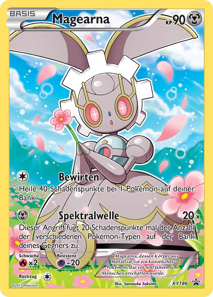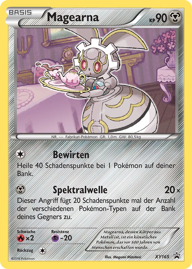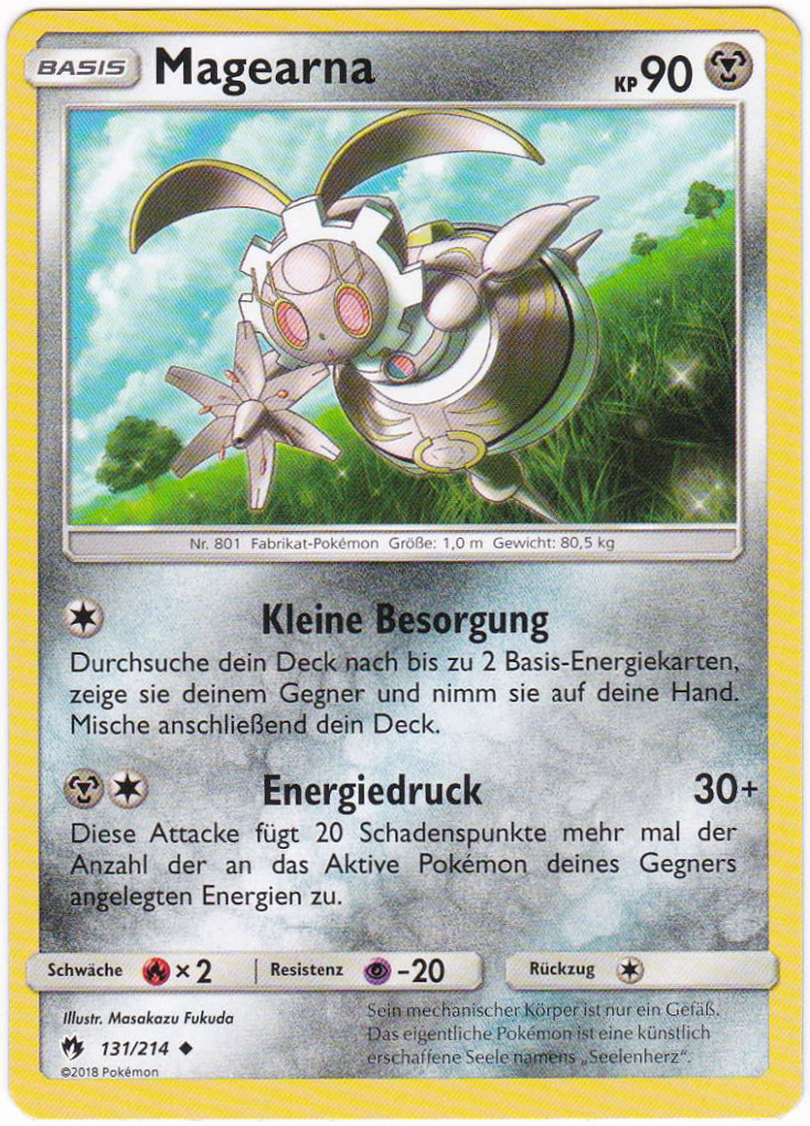 - US So sah Magearna vor etwa 500 Jahren aus. Sein Körper ist lediglich ein Gefäß, das eigentliche Pokémon ist eine künstlich erschaffene Seele.